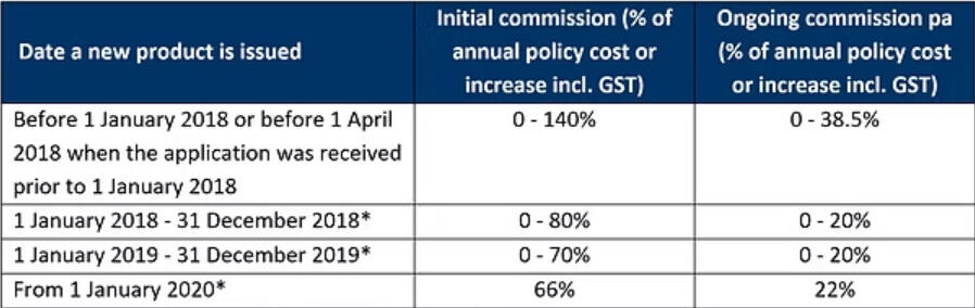 *We may receive the pre-1 January 2018 commission rates above from the product issuer, higher commission rates than those outlined in the above table if:- your policy was issued before 1 January 2018, and you exercise an option or apply for additional cover under your policy after 1 January 2018; or